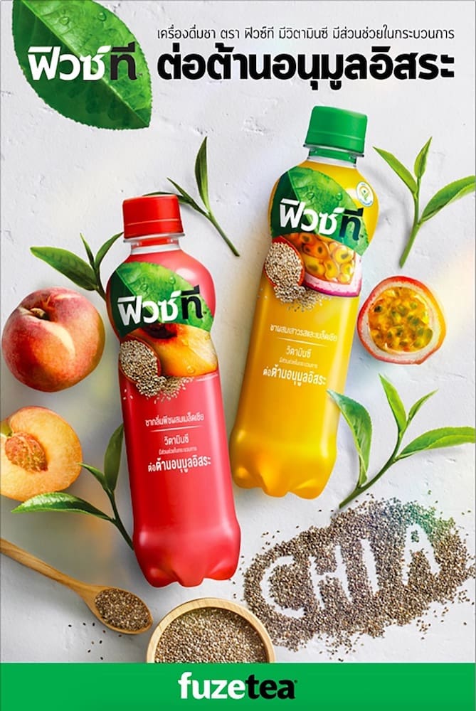 กลุ่มธุรกิจโคคา-โคลา ในประเทศไทยประกาศเปิดตัว “ฟิวซ์ที” เครื่องดื่มชาน้องใหม่ 2 รสชาติ เป็นครั้งแรกในเมืองไทย ‘เครื่องดื่มชาผสมน้ำเสาวรสและเมล็ดเชีย’ และอีกหนึ่งสูตร ‘เครื่องดื่มชากลิ่นพีชผสมเมล็ดเชีย’ อร่อย กลมกล่อม หอมกลิ่นชา อุดมไปด้วยวิตามินซีที่มีส่วนช่วยในการต่อต้านอนุมูลอิสระ และผสมผสานกับอาหารเพื่อสุขภาพอย่าง ‘เมล็ดเชีย’ ที่มีสารอาหารอันเป็นประโยชน์ต่อร่างกาย อาทิ โปรตีน แคลเซียม ไฟเบอร์ วิตามินบี 1-3 และอื่นๆ อีกมากมาย ตอบโจทย์ไลฟ์สไตล์ผู้บริโภครุ่นใหม่ที่ใส่ใจสุขภาพ แต่ต้องเผชิญอุปสรรคที่หลีกเลี่ยงไม่ได้ในทุกวัน อย่างมลภาวะเป็นพิษ ความร้อน และฝุ่นควัน