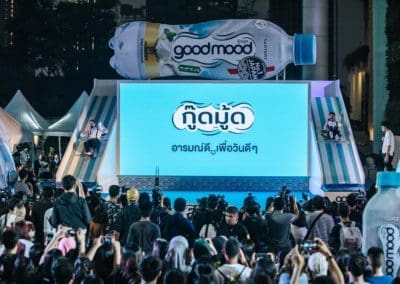 ภายในงานแถลงข่าวครั้งนี้ถูกจัดขึ้นอย่างยิ่งใหญ่ โดยเนรมิตลานพาร์คพารากอนให้เป็น “กู๊ดมู้ด เพลย์กราวด์” (goodmood Playground) สวนสนุกโครงสร้างใสแห่งแรกใจกลางกรุงเทพฯ ที่ได้รวมกิจกรรมที่จะทำให้ผู้ที่มาร่วมงานอารมณ์ดีไว้มากมาย ได้แก่ goodmood give good smile, goodmood good laugh และ goodmood goes round มาคอยหมุนเวียนแจกความอร่อยสดชื่นให้ชิมฟรีทั้งวัน พร้อมยกระดับความอารมณ์ดีให้คนทั้งงานและคนไทยทั้งประเทศตลอดเดือนมีนาคมด้วย