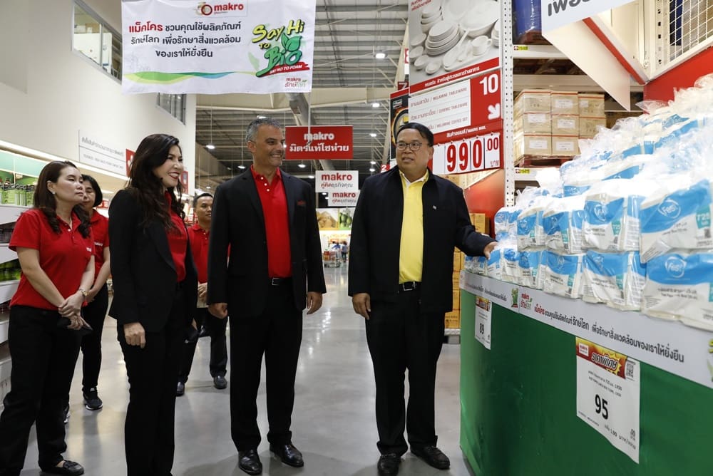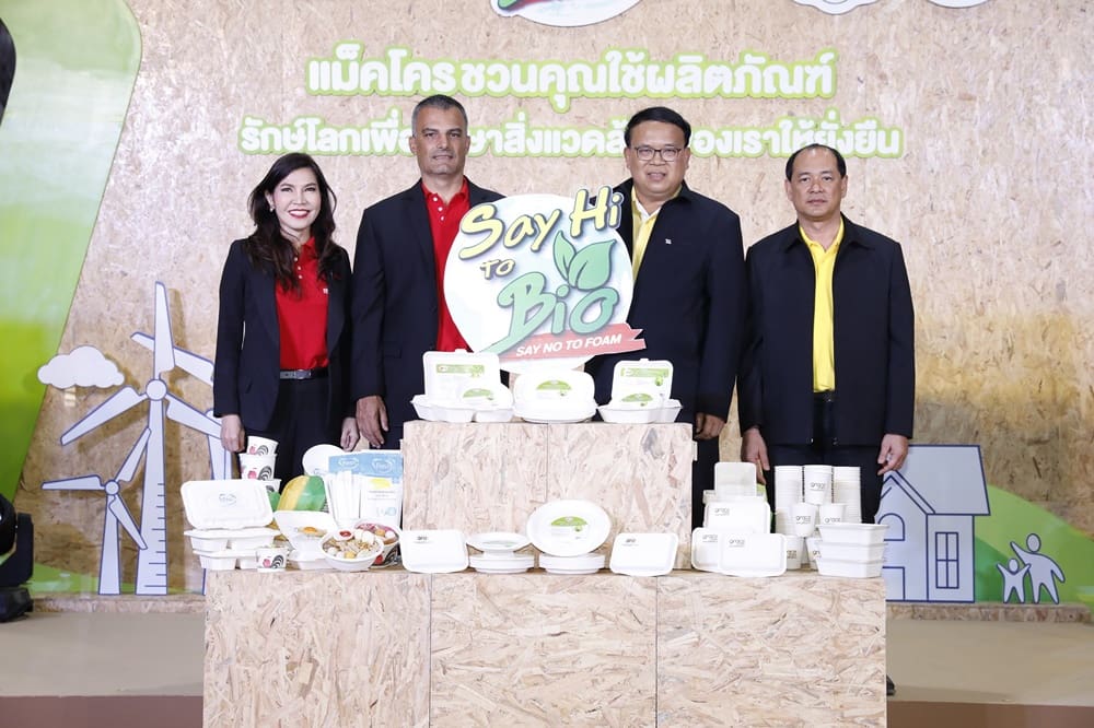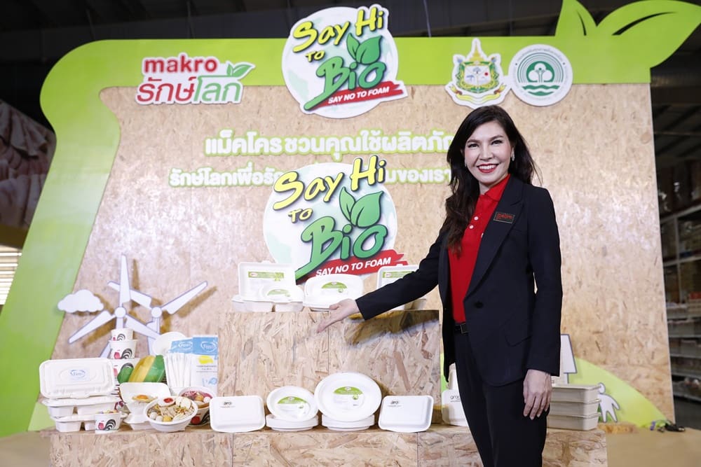นางศิริพร เดชสิงห์ รองประธานเจ้าหน้าที่บริหาร สายงานการตลาด บริษัท สยามแม็คโคร จำกัด (มหาชน) กล่าวว่า 1 ในเป้าหมายการดำเนินธุรกิจที่สำคัญของแม็คโครก็คือ การลดผลกระทบต่อสิ่งแวดล้อม โดยที่ผ่านมา แม็คโครเป็นศูนย์ค้าส่งรายเดียวในประเทศไทยที่มีนโยบายชัดเจนในเรื่องการไม่ให้ถุงพลาสติกแก่ลูกค้า เพื่อช่วยลดปัญหาสิ่งแวดล้อม โดยเฉพาะปริมาณขยะที่เกิดจากพลาสติกที่มีจำนวนมากขึ้น สร้างผลกระทบระดับโลก และด้วยพันธกิจ “คู่คิดธุรกิจคุณ” ทำให้แม็คโครมุ่งศึกษาและพัฒนาบรรจุภัณฑ์ที่ทำจากวัสดุธรรมชาติ ซึ่งย่อยสลายได้เองตามธรรมชาติ ทดแทนพลาสติกและโฟม เพื่อสร้างทางเลือกใหม่ๆ ตลอดจนการประกาศเจตนารมณ์เป็นครั้งแรก ในการหยุดจำหน่ายภาชนะโฟมบรรจุอาหารภายใต้โครงการ “Say Hi to Bio, Say No to Foam : แม็คโครรักษ์โลก ชวนคุณใช้ผลิตภัณฑ์รักสิ่งแวดล้อม” ใน 12 สาขาที่เป็นแหล่งท่องเที่ยว เพื่อนำเสนอทางเลือกในการใช้บรรจุภัณฑ์ให้ร้านอาหารรายย่อย พร้อมส่งเสริมการใช้ด้วยโปรโมชั่นพิเศษตลอดทั้งปี