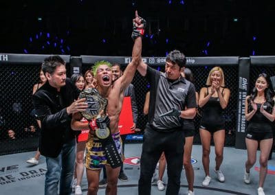 “น้องโอ๋ ไก่ย่างห้าดาว” แข้งขวาผ่านตลอด ต้อนชนะ “ฮิโรอากิ ซูซุกิ” นักชกชาวญี่ปุ่น ป้องกันแชมป์โลกมวยไทย ONE Super Series รุ่นแบนตั้มเวตครั้งแรกด้วยฟอร์มสุดหรู ในศึก ONE: WARRIORS OF LIGHT ที่สังเวียนอิมแพค อารีน่า เมืองทองธานี เมื่อวันที่ 10 พ.ค. ขณะที่ “เพชรดำ เพชรยินดีอะคาเดมี่” กระชากเข็มขัดแชมป์โลก คิกบ๊อกซิ่ง รุ่นฟลายเวตจากเอว เอเลียส มาห์มูดี้ นักชกแอลจีเรีย