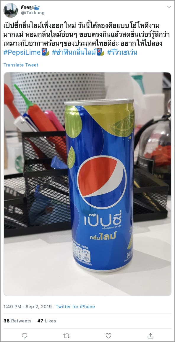 เครดิตทวีตจาก: https://twitter.com/PepsiThailand/status/1168357936160301056