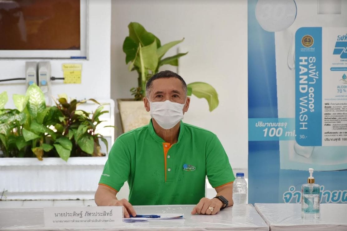 นายโชคชัย คลศรีชัย รองประธานคณะกรรมการบริหาร บริษัท ไทย แอ็กโกร เอ็กซเชนจ์ จำกัด (ตลาดไท) กล่าวว่า “สถานการณ์การแพร่ระบาดไวรัสโควิด-19 ส่งผลกระทบรุนแรงไปทุกภาคส่วนของไทย รวมทั้งพี่น้องเกษตรกรในภาคตะวันออกและภาคใต้ ซึ่งในสถานการณ์ปกติ ช่วงนี้สภาพการค้าจะคึกคักอย่างมาก จากการจำหน่ายและส่งออกผลไม้สดตามฤดูกาลที่ได้รับความนิยมอย่างสูงในหมู่ผู้บริโภคทั้งชาวไทยและชาวต่างชาติ อาทิ ทุเรียน มังคุด ลองกอง เงาะ ลำไย ลิ้นจี่ และมะม่วง แต่สถานการณ์ปัจจุบันทำให้เกษตรกรไม่สามารถกระจายผลไม้ดังกล่าวไปถึงมือผู้บริโภคได้อย่างเต็มที่ โดยในปีนี้มีจำนวนมากกว่า 3 ล้านตันทั่วประเทศ ตลาดไทในฐานะหนึ่งในสมาชิกสมาคมการค้าตลาดกลางค้าส่งสินค้าเกษตรไทย ขอเป็นส่วนหนึ่งในการรับนโยบายจากสมาคมฯ ช่วยบรรเทาความเดือดร้อนของพี่น้องเกษตรกร โดยอาศัยความเชี่ยวชาญและกลไกการตลาดของตลาดกลางค้าส่ง เชื่อมโยงและกระจายผลผลิตจากแหล่งผลิตสู่ผู้บริโภค โดยรับผลผลิตจากกลุ่มเกษตรที่ขึ้นทะเบียนกับกรมการค้าภายใน กระทรวงพาณิชย์ มายังตลาดไทซึ่งเป็นตลาดผลไม้แห่งหนึ่งของประเทศเพื่อส่งต่อให้กับเครือข่ายรถเร่ธงฟ้านำไปกระจายให้แก่ผู้บริโภคถึงที่พักอาศัย”