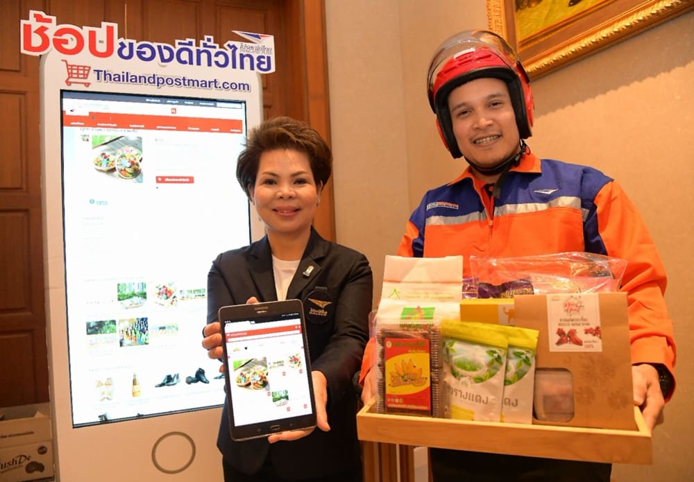 นางสมร เทิดธรรมพิบูล กรรมการผู้จัดการใหญ่ บริษัท ไปรษณีย์ไทย จำกัด (ปณท) แถลงถึงบทบาทของ ปณท ในการเป็นอี-มาร์เก็ตเพลส หรือร้านออนไลน์ที่รวบรวมผลิตภัณฑ์ท้องถิ่นจากทั่วประเทศ รองรับโครงการ “ดิจิทัลชุมชน” เพื่อเป็นช่องทางการกระจายสินค้าเกษตร สินค้าชุมชน และสินค้าโอทอปที่ใหญ่ที่สุดในประเทศไทย รวมถึงสุดยอดของดีของเด่นจากชุมชนทั่วไทย ทั้งอาหารชื่อดังจากหลายพื้นที่ อาทิ แดงแหนมเนือง หมูย่างเมืองตรัง เป็ดย่างพิมาย ฯลฯ รวมถึงสินค้าของไปรษณีย์ เปิดโอกาสให้ผู้บริโภคสั่งซื้อได้ตลอด 24 ชม. สะดวกรวดเร็ว พร้อมจัดส่งสินค้าถึงมือภายใน 1 – 2 วันทำการหลังรับคำสั่งซื้อและชำระเงิน ทั้งนี้การใช้งานรองรับทั้งทางเว็บไซต์ และแอปพลิเคชั่นบนสมาร์ทโฟน ในชื่อ thailandpostmart.com ทั้งระบบแอนดรอยด์ และไอโอเอส