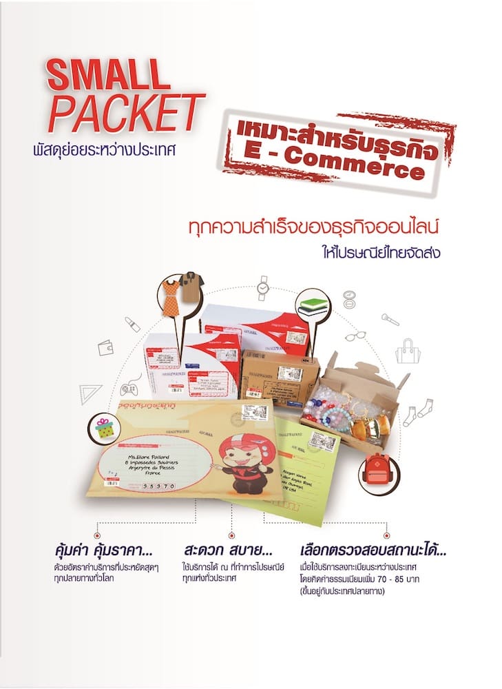 และเพื่อรองรับผู้ประกอบการอีคอมเมิร์ซไทยในการขยายตลาดไปสู่ลูกค้าต่างประเทศมากขึ้น ไปรษณีย์ไทย จึงได้ปรับปรุงและพัฒนาบริการเพื่อเพิ่มทางเลือกให้ครอบคลุมทุกความต้องการของผู้ค้าออนไลน์ในไทย ไม่ว่าจะเป็นบริการ EMS World One Price คิดราคาแบบเหมาจ่ายตามขนาดกล่อง/ซอง และโซนประเทศหลายทาง ครอบคลุม 39 ปลายทางทั่วโลก บริการส่งพัสดุย่อย Small Packet ในราคาประหยัดเริ่มต้นที่ 12 บาท เหมาะสำหรับการส่งของชิ้นเล็กน้ำหนักไม่เกิน 2 กก. ไปยัง 200 ประเทศปลายทางทั่วโลก ไปจนถึงบริการ e-Packet ที่ตรวจสอบสถานะการจัดส่งได้ตลอดเส้นทางในราคาประหยัด เริ่มให้บริการเมื่อต้นเดือน เม.ย.ที่ผ่านมาไปยัง 13 ประเทศปลายทางสำคัญ และจะเชื่อมต่อเข้ากับระบบของเว็บไซต์ eBay เร็ว ๆ นี้เพื่อรองรับผู้ค้าบน eBay กว่า 10,000 รายทั่วประเทศ