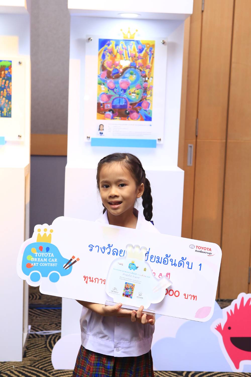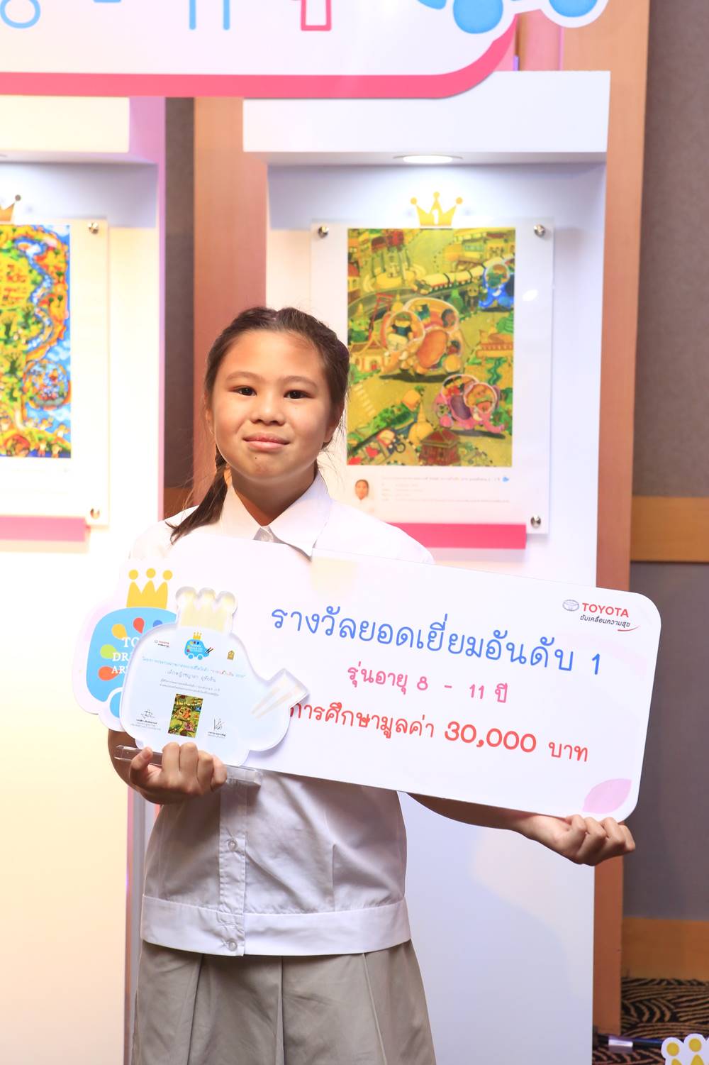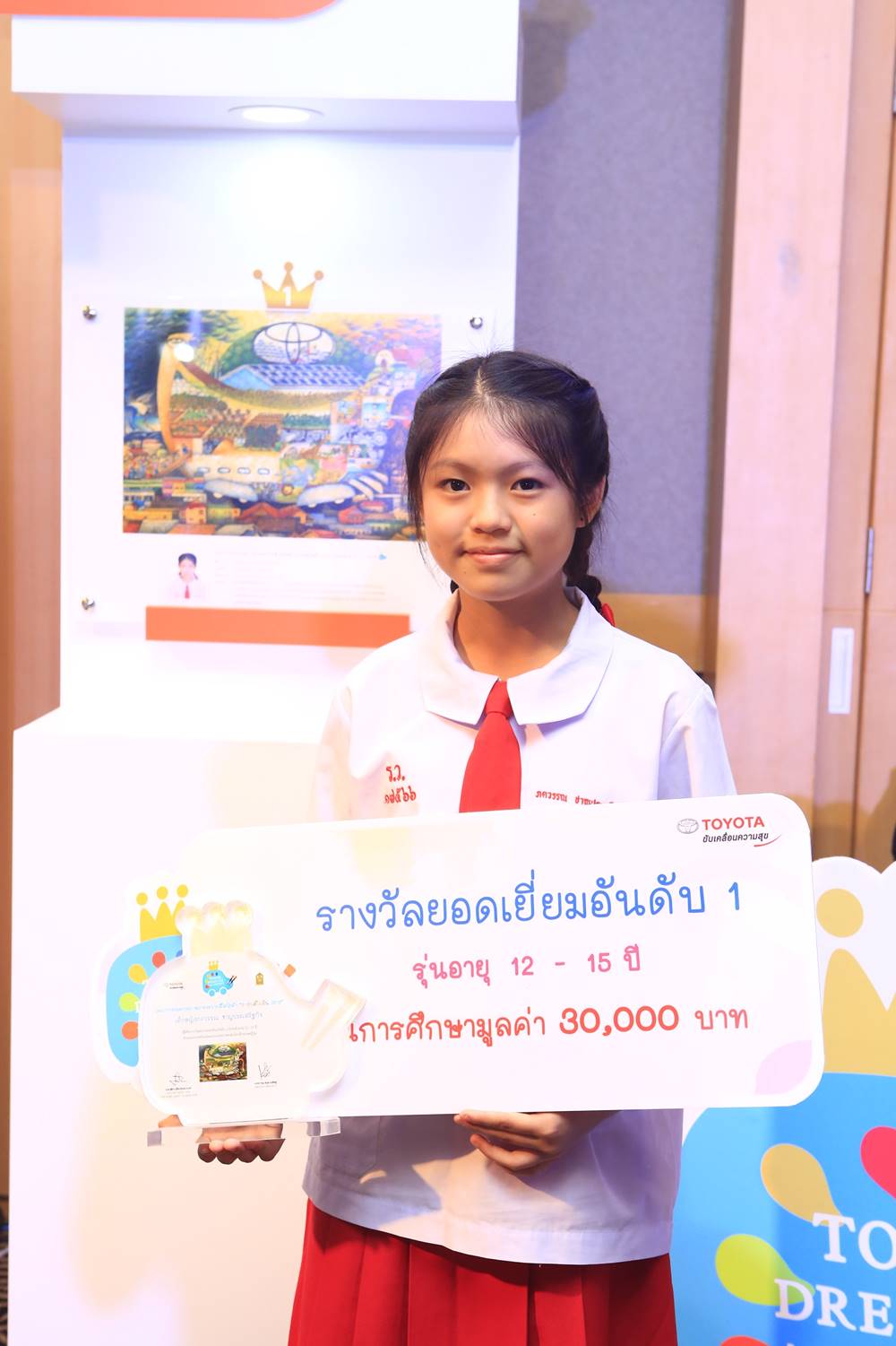 ผู้ชนะเลิศรางวัลอันดับ 1 ในแต่ละรุ่นอายุ จะได้รับพระราชทานถ้วยรางวัลสมเด็จพระเทพรัตนราชสุดาฯ สยามบรมราชกุมารี ซึ่งนับเป็นพระมหากรุณาธิคุณเป็นล้นพ้นแก่โครงการฯ และเยาวชนไทย นอกจากนี้ผู้ชนะ การประกวดระดับประเทศทั้ง 9 คนจะได้รับทุนการศึกษาพร้อมโล่ประกาศเกียรติคุณ จาก บริษัท โตโยต้า มอเตอร์ ประเทศไทย จำกัด พร้อมประกาศนียบัตรรับรองโดยกระทรวงศึกษาธิการ ทั้งยังได้เป็นตัวแทนจากประเทศไทย เข้าร่วมประกวดกับผลงานจากนานาชาติ ในเวที Toyota Dream Car Art Contest ที่ประเทศญี่ปุ่น ซึ่งกำหนดประกาศผลการประกวดระดับโลก ในเดือนสิงหาคม พ.ศ. 2561