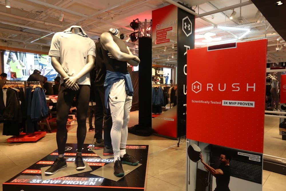 เสื้อผ้าของ UA RUSH จะเน้นการหมุนเวียนพลังงานเพื่อเพิ่มความแข็งแรง ทำความเร็ว และความแข็งแกร่งให้กับร่างกายระหว่างการออกกำลังกาย ในขณะที่ Recovery จะช่วยในเรื่องการลดความเหนื่อยล้า และเร่งการฟื้นตัว ใช้สวมใส่หลังการออกกำลังกายและเวลานอน เพื่อบำรุงและฟื้นฟูร่างกายได้รวดเร็วยิ่งขึ้น โดยทั้ง RUSH และ Recovery เป็นคอลเล็กชั่นเสื้อผ้าที่เหมาะกับทุกคนที่ต้องการพัฒนาประสิทธิภาพในการออกกำลังกาย และที่สำคัญ RUSH ยังเหมาะเป็นอย่างยิ่งสำหรับคนไทยที่อาศัยอยู่ในสภาพอากาศร้อน โดยมีสไตล์ทันสมัยในรูปแบบสปอร์ตไลฟ์สไตล์ ซึ่งสามารถสวมใส่ได้ทุกที่ทุกเวลา