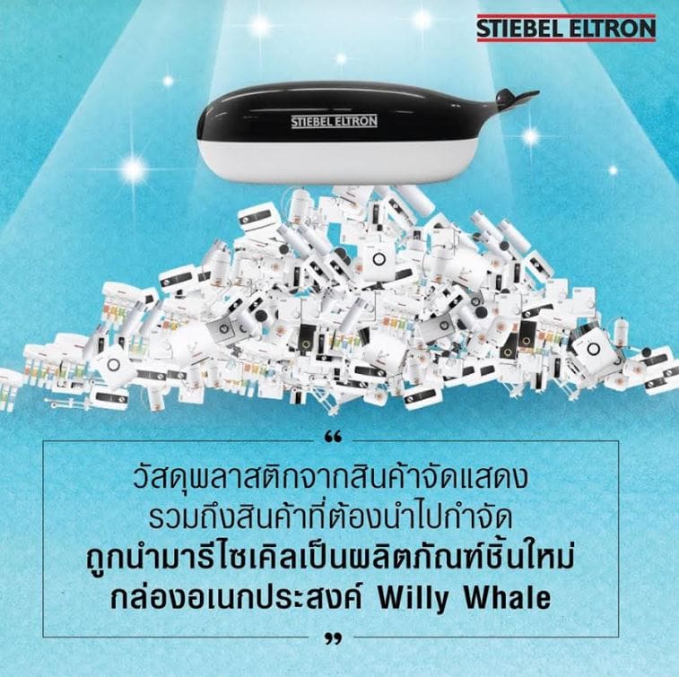 “กระแสการรณรงค์และรักษาสิ่งแวดล้อมนั้นกลายเป็นปรากฏการณ์ที่กลุ่มอุตสาหกรรมในประเทศไทยและทั่วโลกต่างตระหนักถึง ซึ่งนั่นคือสิ่งที่เราจำเป็นจะต้องปรับตัวให้ทัน” คุณพัลลภ เชี่ยวชาญวิทยเวช ผู้อำนวยการฝ่ายขายและการตลาด บริษัท สตีเบล เอลทรอน เอเซีย จำกัด กล่าว “ผลกระทบของขยะพลาสติกทั้งบนบกและในน้ำที่กำลังเกิดขึ้นเมื่อครั้งอดีต ปัจจุบัน ไปจนถึงอนาคตนั้น กำลังส่งผลร้ายแรงต่อธรรมชาติและทำให้สัตว์หลายชนิดเกือบจะสูญพันธุ์จากขยะพลาสติกเหล่านี้ เราจึงได้คิดถึงกระบวนการที่จะลดปริมาณขยะลง ซึ่งการทำกล่องอเนกประสงค์ Willy Whale ณ ตอนนี้ยังอยู่ในช่วงแรกที่จะแจกให้แก่ลูกค้าของเราในกิจกรรมทางการตลาดก่อน ในระยะต่อไป เราเริ่มการรับบริจาคผลิตภัณฑ์ที่ไม่ใช้แล้วเพื่อนำมาแปรรูปเป็นของใช้อื่น ๆ เพื่อสร้างประโยชน์ให้แก่ชุมชนต่อไป”