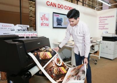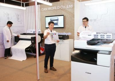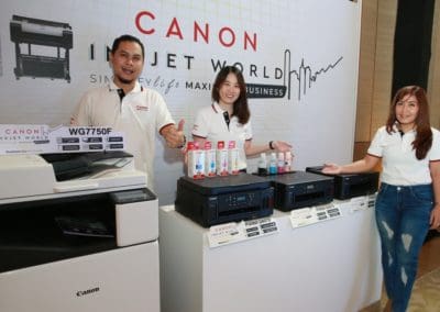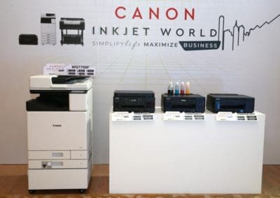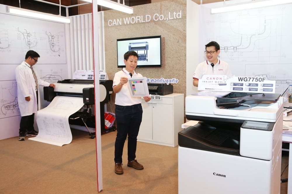 - ธุรกิจระดับ Corporate – Model: เครื่องพิมพ์อิงค์เจ็ท Canon WG7750F เหมาะสำหรับกลุ่มธุรกิจระดับองค์กรขนาดใหญ่ ภาคราชการ หรือกลุ่มงานระดับโปรดักชัน ที่ต้องการแบบพิมพ์เขียว หรือแบบจำลองผังเมือง เป็นต้น สามารถปริมาณหรือขนาดกระดาษที่เครื่องพิมพ์รองรับ ระบบเชื่อมต่อกับผู้ใช้งานจำนวนมาก ซอฟต์แวร์จัดการงานพิมพ์เพื่อควบคุมค่าใช้จ่ายในงานพิมพ์ และการพิมพ์ที่เป็นมิตรต่อสิ่งแวดล้อม อีกทั้งเครื่องพิมพ์อิงค์เจ็ท Canon G6070 และเครื่องพิมพ์อิงค์เจ็ทหน้ากว้าง Canon LFP Series ยังสามารถใช้ได้โมเดลธุรกิจนี้เพื่อเสริมประสิทธิภาพในการทำธุรกิจให้ครอบคลุมยิ่งขึ้น