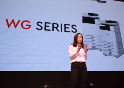 ด้าน นางสาวเนตรนรินทร์ จันทร์จรัสสุข ผู้อำนวยการกลุ่มผลิตภัณฑ์พรินเตอร์ บริษัท แคนนอน มาร์เก็ตติ้ง (ไทยแลนด์) จำกัด กล่าวว่า งาน “แคนนอน อิงค์เจ็ท เวิลด์” (Canon Inkjet World) เนรมิตรขึ้นภายใต้คอนเซ็ปต์ “Simplify Life Maximize Business” โดยแคนนอนได้เปิดตัว กลุ่มผลิตภัณฑ์อิงค์เจ็ทรุ่นใหม่ 2 ซีรี่ส์ รวม 5 โมเดล ประเดิมด้วย เครื่องพิมพ์อิงค์เจ็ทในตระกูล G Series ได้แก่ G6070 G5070 และ GM2070 ตามมาด้วยเครื่องพิมพ์อิงค์เจ็ทสี ขนาด A3 ในตระกูล WG Series ได้แก่ WG7740 และ WG7750F ที่ตอบโจทย์ความต้องการของธุรกิจในทุกระดับ ซึ่งสะท้อนออกมาในรูปแบบของโมเดลธุรกิจได้ 4 ระดับ ดังนี้