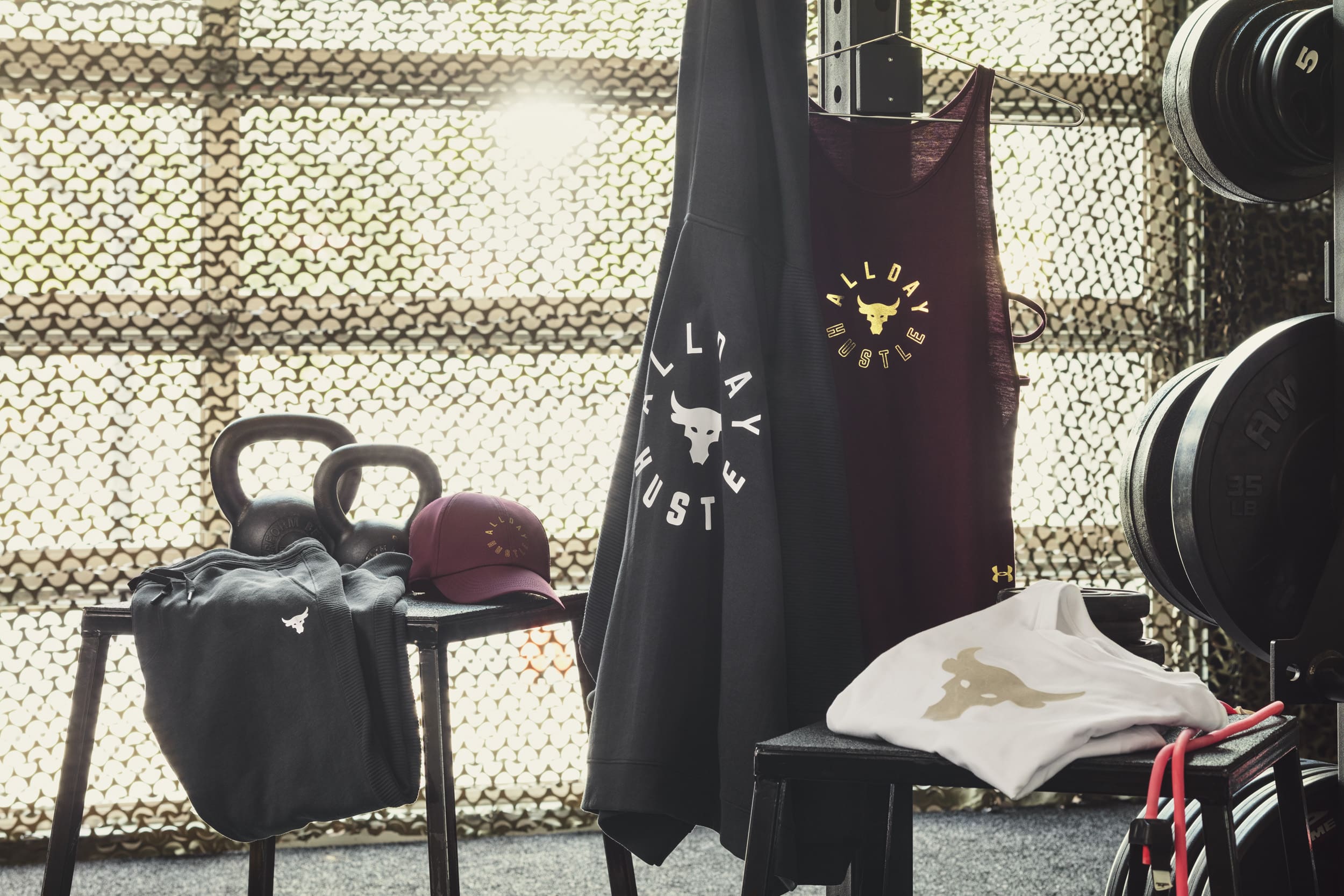 นอกจากการเปิดตัวรองเท้า Project Rock 1 แล้ว อันเดอร์ อาร์เมอร์ยังได้เผยโฉมคอลเลคชั่น “All Day Hustle” ชุดออกกำลังกายที่แสดงให้เห็นถึงความมุมานะ ความอึด และความพยายามที่ไม่มีที่สิ้นสุดของดเวย์น จอห์นสันอีกด้วย
