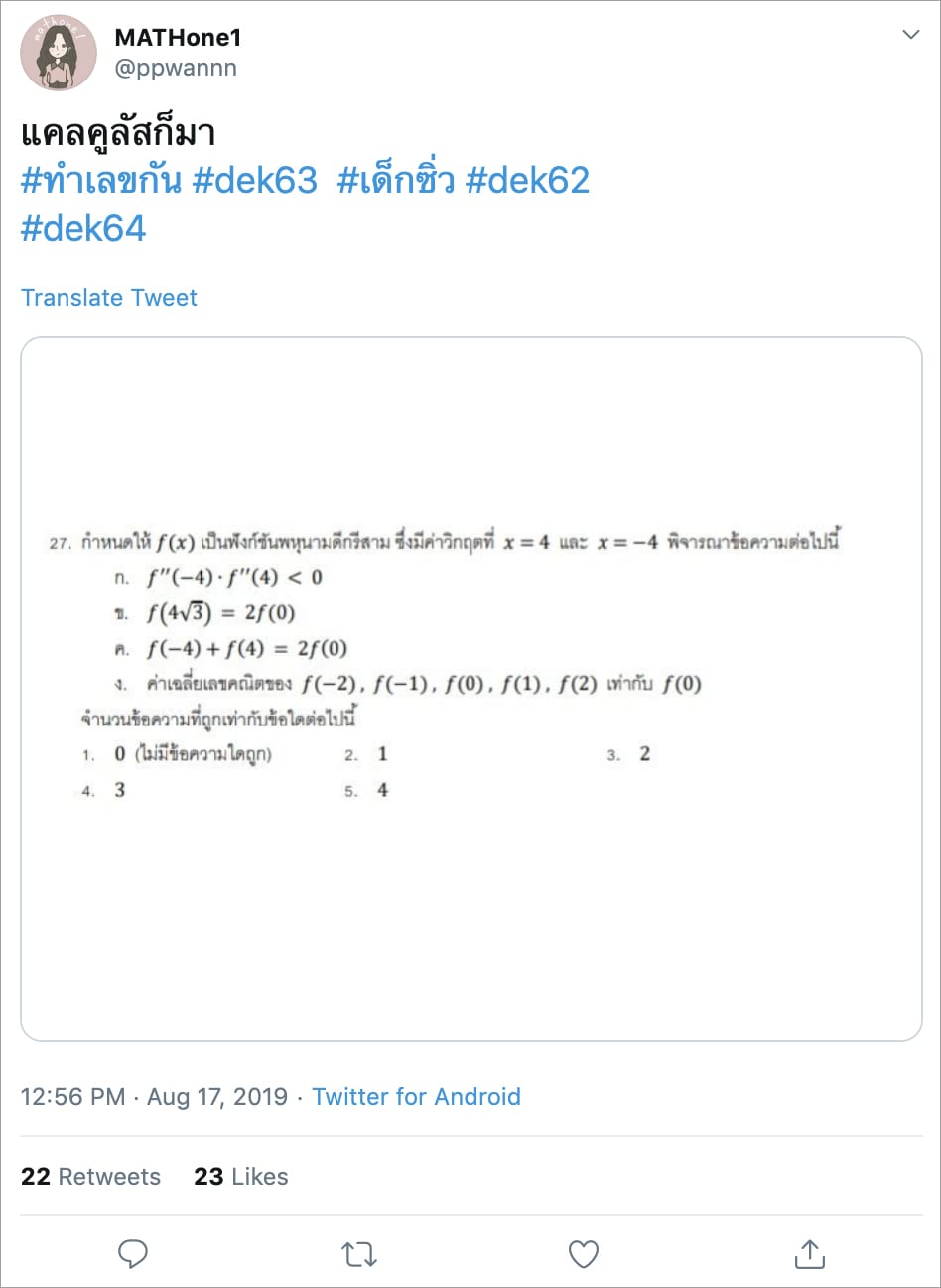 ในช่วงครึ่งปีแรกของ 2562 นักเรียนไทยพากันติด #Dek62 ซึ่งเป็นแฮชแท็กที่เป็นศูนย์รวมของเด็กนักเรียนที่กำลังมองหาเคล็ดลับและข้อมูลในการสอบเข้ามหาวิทยาลัย