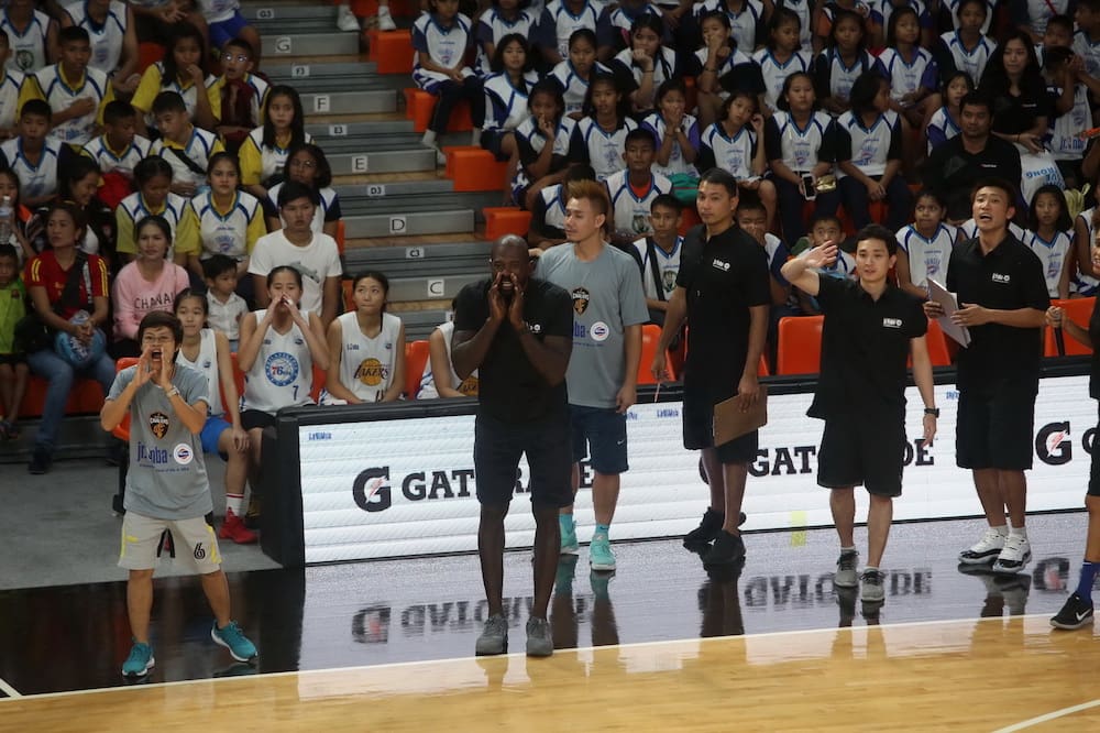 เจสัน ริชาร์ดสัน อดีตผู้เล่นและแชมป์เก่าเอ็นบีเอ สแลมดังก์ 2 สมัย ร่วมโค้ชและลุ้นผลอย่างใกล้ชิด