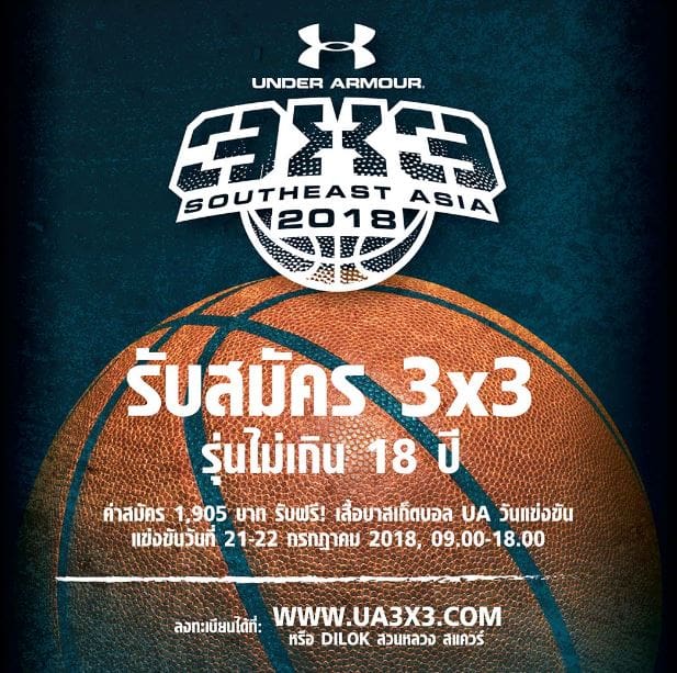 กรุงเทพ ประเทศไทย [15 มิถุนายน 2561] อันเดอร์ อาร์เมอร์ แบรนด์ชุดกีฬาประสิทธิภาพสูง จะเป็นเจ้าภาพจัดการแข่งขัน UA BASKETBALL 3x3 ครั้งแรกในประเทศไทยร่วมกับบริษัทโมโน และ ดิลก การแข่งขันในครั้งนี้จะเปิดรับผู้เข้าแข่งขัน รุ่นอายุน้อยกว่า 18 ปี จำนวน 72 ทีม (60 ทีมชายและ 12 ทีมหญิง) เพื่อร่วมประลองฝืมือกันที่กรุงเทพฯ ณ โมโน สเตเดียม 29 ในวันเสาร์ที่ 21 และวันอาทิตย์ที่ 22 กรกฎาคม 2561 เวลา 09.00-18.00 น.ที่จะถึงนี้