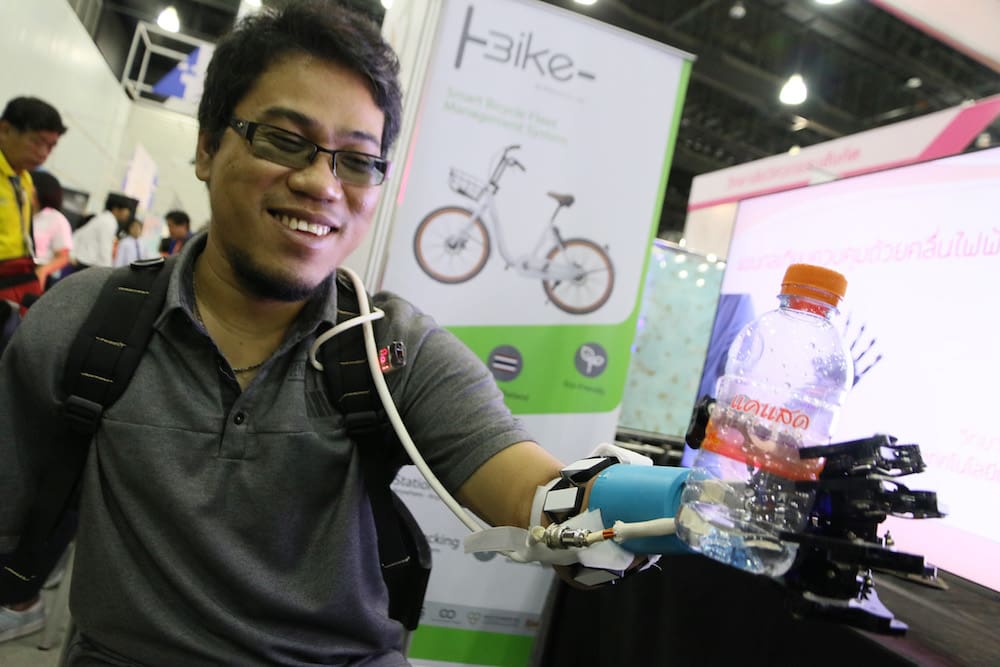 หมดปัญหาการดำเนินชีวิตสำหรับผู้พิการที่สูญเสียแขนจากอุบัติเหตุ ด้วยนวัตกรรมแขนกลเทียม ชิ้นแรกของประเทศ ที่ได้รับการพัฒนาโดยวิทยาลัยนานาชาติ สจล. แขนกลดังกล่าวใช้ระบบตรวจจับคลื่นไฟฟ้าชีวภาพ ที่เกิดขึ้นบริเวณผิวหนังกล้ามเนื้อช่วงแขน เพื่อส่งสัญญาณไปยังระบบ และถอดรหัสสัญญาณด้วยโปรแกรมที่เขียนขึ้นด้วยภาษาซอฟต์แวร์ จากนั้นระบบจะส่งสัญญาณควบคุมสั่งการไปยังมือกลไฟฟ้า เพื่อให้ขยับตามการเปลี่ยนแปลงของคลื่นไฟฟ้ากล้ามเนื้อที่ขยับ โดยนวัตกรรมดังกล่าว ได้รับการพัฒนาขึ้นให้สามารถใช้งานได้โดยไม่ต้องใช้การผ่าตัดทดแทนส่วนของร่างกายได้อย่างมีประสิทธิภาพ และปลอดภัย สะดวกในการดูแล และช่วยอำนวยความสะดวกในการดำเนินชีวิตให้แก่ผู้พิการได้ดังเช่นคนปกติทั่วไป