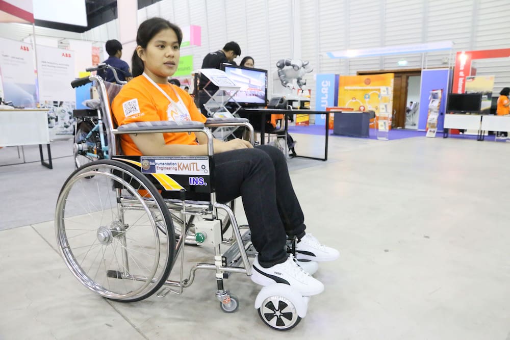 นวัตกรรมรถเข็นไฟฟ้าสำหรับผู้ป่วย โดยคณะวิศวกรรมศาสตร์ สจล. ที่ได้รับแนวคิดการออกแบบต่อยอดสำหรับผู้ป่วยที่สูญเสียแขน และผู้สูงอายุ ให้สามารถควบคุมการเคลื่อนที่ของรถเข็นได้เอง ในขณะที่ไม่มีพยาบาล หรือผู้ดูแล โดยใช้ระบบการสั่งการควบคุมทิศทางการเคลื่อนที่ผ่านแป้นรองฝ่าเท้า วัดความต่างน้ำหนักที่กดลงกับแป้นบังคับทั้ง 2 ข้าง นอกจากนี้ ยังมีการพัฒนานวัตกรรมรถเข็นไฟฟ้าที่ควบคุมด้วยสายตา ฯลฯ เพื่อยกระดับวงการการแพทย์ ให้เท่าทันสถานการณ์ที่กำลังเข้าสู่สังคมผู้สูงอายุ รองรับการใช้งานสำหรับประชาชนทุกกลุ่ม และรองรับกรณีการเจ็บป่วยต่างๆ ที่อาจเกิดขึ้นได้ในอนาคต