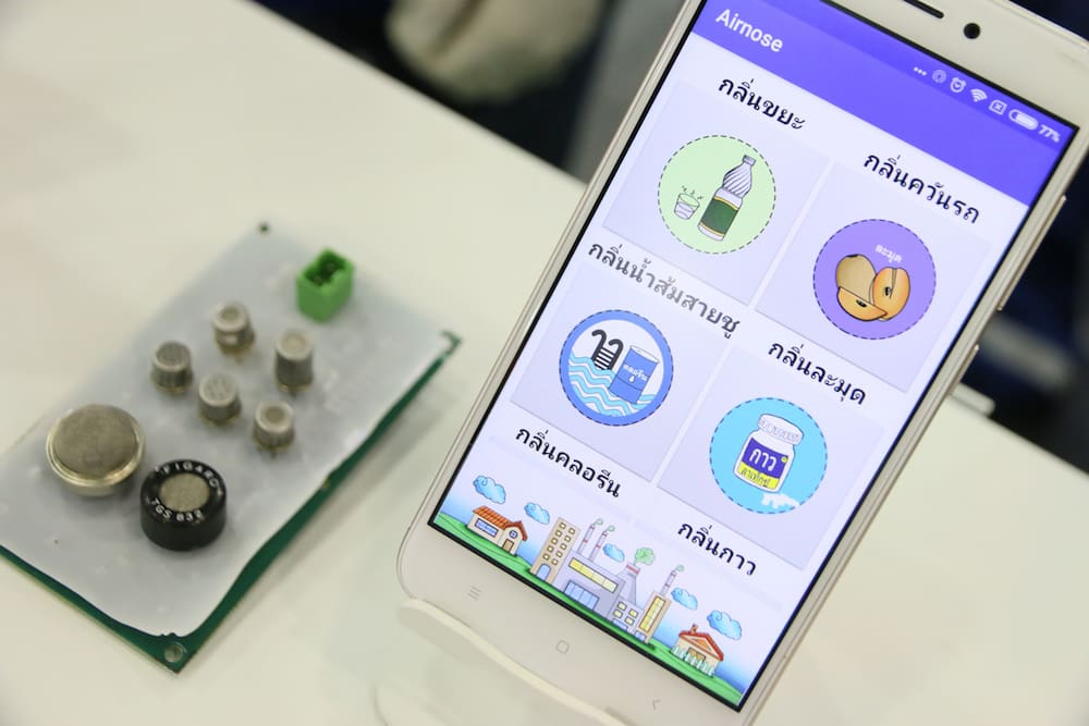 นวัตกรรมจากองค์ความรู้นาโนเทคโนโลยี ที่ประยุกต์เข้าใช้กับโรงงานอุตสาหกรรม เพื่อใช้ตรวจจับกลิ่นสารเคมีอันตราย จากอุตสาหกรรมการผลิต ที่ปนเปื้อนในอากาศ โดยมีฟังก์ชันการทำงานทั้งการตรวจจับกลิ่นสารเคมี ประมวลผลผ่านสมองกลอัจฉริยะ ซึ่งสามารถแยกแยะได้แม่นยำสูง แม้ว่าจะเป็นสารเคมีในกลุ่มเดียวกัน อาทิ เอทานอล กับ เมทานอล เป็นต้น นอกจากนี้ ยังสามารถจับทิศทางลมที่นำพากลิ่นดังกล่าวมา เพื่อค้นหาต้นตอการเกิดการรั่วไหล โดยนวัตกรรมดังกล่าว เริ่มต้นนำร่องใช้งานจริง ในพื้นที่นิคมอุตสาหกรรมมาบตาพุด ที่เป็นจุดศูนย์รวมโรงงานอุตสาหกรรม และเซนเตอร์โลจิสติกส์สินค้า ของเหลว และแก๊ส ที่เป็นวัตถุดิบในการผลิตมากมาย