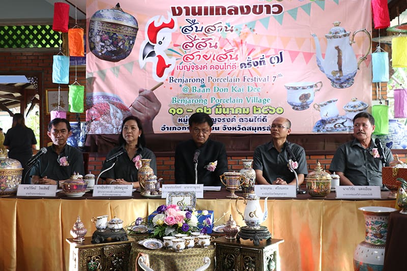 หมู่บ้านเบญจรงค์ดอนไก่ดี เป็นชุมชนชาวบ้านที่ได้รับการถ่ายทอดภูมิปัญญาจากวิทยากรชาวไทย-จีนโบราณ ซึ่งทางโรงงานเสถียรภาพ ผู้ผลิตเครื่องเบญจรงค์เก่าแก่ของจังหวัดสมุทรสาคร เชิญมาสอนลวดลายบนเครื่องถ้วยชาม ต่อมาในปี พ.ศ. 2532 โรงงานฯ ประสบภาวะขาดทุนต้องปิดกิจการ เพื่อความอยู่รอดช่างเขียนลายเบญจรงค์จึงต้องรวมกลุ่ม โดยนำองค์ความรู้และทักษะการทำเครื่องเบญจรงค์มาประยุกต์ใช้ ภายใต้กลุ่มหมู่บ้านเบญจรงค์ดอนไก่ดี ด้วยรูปแบบลวดลายเฉพาะตัวที่เป็นเอกลักษณ์ เครื่องเบญจรงค์ที่นี่จึงได้รับการคัดสรรเป็นสุดยอดหนึ่งตำบลหนึ่งผลิตภัณฑ์ จากความทุ่มเทส่งผลให้ในปี 2550 หมู่บ้านเบญจรงค์ดอนไก่ดี ได้รับรางวัลชุมชนดีเด่นทางด้านการท่องเที่ยว รางวัลอุตสาหกรรมท่องเที่ยวไทย จาก ททท. นอกจากนี้จากชาวชุมชนยังได้พัฒนาฝีมือการทำเครื่องเบญจรงค์ อย่างต่อเนื่องและประณีตสวยงามจนได้รับการคัดเลือกเป็นย่านธุรกิจสร้างสรรค์จังหวัดสมุทรสาคร โดยในปีนี้ยังคงสร้างสรรค์งานในรูปแบบผสมผสานระหว่างเครื่อง เบญจรงค์ไทยกับ Lifestyle Modern ที่สามารถนำมาใช้ได้จริงในชีวิตประจำวัน และพลาดไม่ได้กับ Highlight ของงาน “ชุดเบญจรงค์ลวดลายพิเศษ” ที่ทางคณะผู้จัดงานฯ ได้รังสรรค์ขึ้นมาจากแรงบันดาลใจ เพื่อสำนึกในพระมหากรุณาธิคุณพระบาทสมเด็จพระปรมินทรมหาภูมิพลอดุลยเดช รัชกาลที่ 9 ซึ่งจะจัดแสดงให้ชมภายในงานนี้เท่านั้น !!